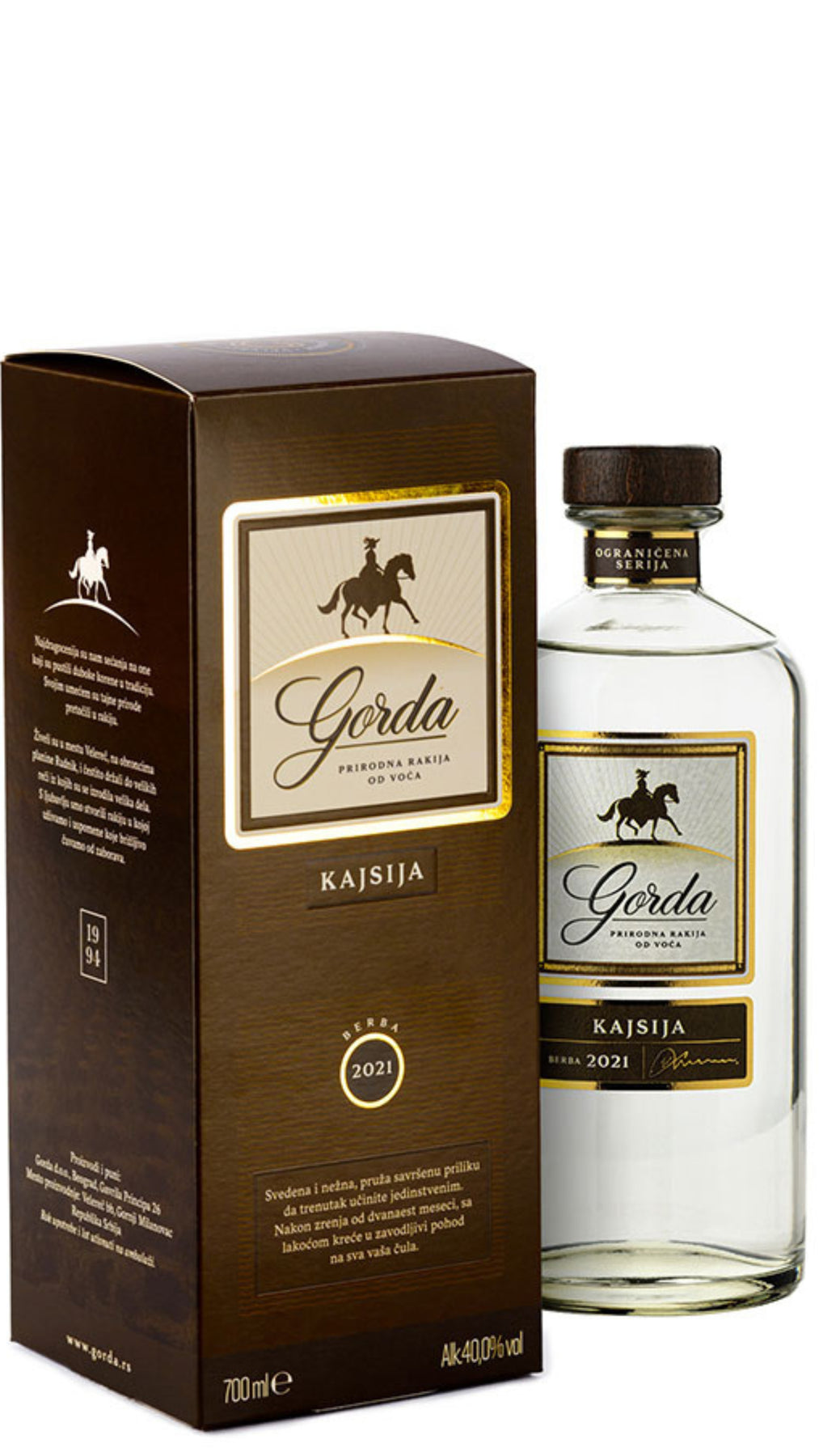 Gorda Apricot Rakija, traditionally known as Kajsija (kajsija meaning apricot), is a classic Balkan fruit rakija celebrated for its rich aroma and rounded fruit character. Apricot rakija is prized across the region for its balance of fragrance, natural sweetness and smooth warmth.